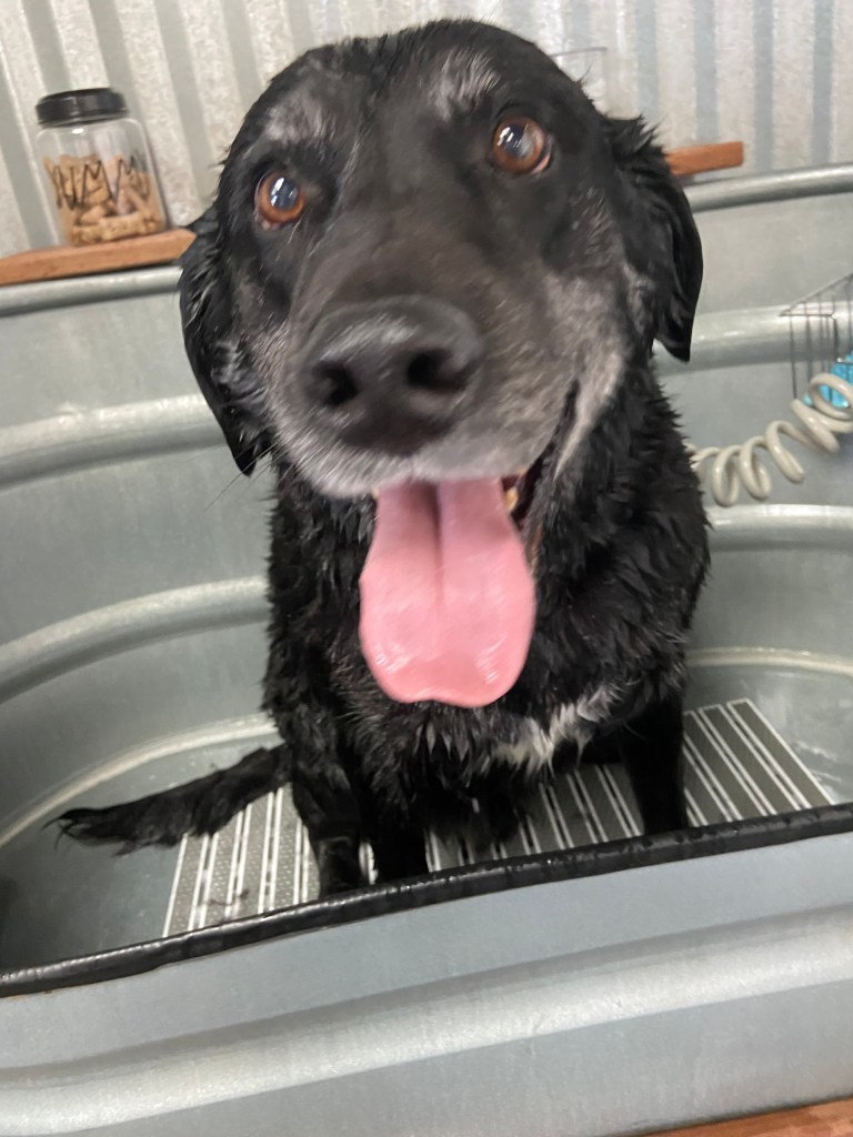 While dad was washing me, he sparked up a conversation with the other person next to us. Dad has been more social lately and talking with other strangers. It’s pretty neat to see him branch out and listen to the stories of other humans. Well anyways, this person was an older gentleman who trains therapy dogs. He currently has successfully trained 12 respectful and gentle dogs. And he goes all over the state helping out other people who need their services. Which is really cool! And at the moment, the gentleman was cleaning a terrier dog. I think he said his name was “McGruff”. Cool fella. The man had explained that McGruff had physical touch issues. And that he was abandoned and mistreated before being adopted. So he has a difficulty interacting with other dogs and humans. But it was so nice to see the gentleman carefully and delicately tend with gentleness to the terrier. Every dog deserves to be loved with kindness and respect. So, I’m glad this human was able to adopt this terrier. McGruff appeared to be really happy being with this gentleman.